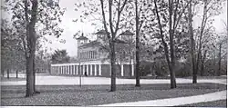 One of the earliest improvements was the "South Open Green", a pastoral meadow with grazing sheep, also used as a ball field. Architect Daniel H. Burnham's firm designed the 1880 limestone round stables, the 1881 refectory, and the 1910 administrative headquarters for the South Park Commission. Other early attractions to the park included riding stables, cricket grounds, baseball fields, a toboggan slide, archery ranges, a golf course, Swimming pool, bicycle paths, row boats, horseshoe pits, greenhouses, a rose garden, a bandstand, a small zoo featuring six alligators, and a lily pond.[4] The lily pond (pictured left) was a particularly enticing attraction because few had seen such a site.[3] Today, the administrative building houses DuSable Museum of African American History.[6] The park has retained its environmental appeal with continuing visionary support of the Burnham Plan which supported the maintenance of a park system.[11]