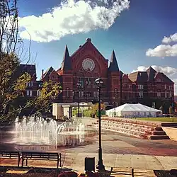 Washington Park is bounded by West 12th, West 14th, Race, and Elm Streets in the Over-the-Rhine neighborhood of Cincinnati, Ohio, United States. The park is owned and operated by the Cincinnati Park Board. The 6-acre (2.4 ha) park served as Presbyterian and Episcopal cemeteries before it was acquired by the city from 1858 to 1863.[1][2]