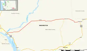 State Route 124 (SR 124) is a state highway in Walla Walla County, Washington, United States. It spans 45 miles (72 km) from Burbank in the west to Waitsburg in the east, intersecting U.S. Route 12 (US 12) at both ends. The highway generally follows the Snake and Touchet rivers and intersects SR 125 near Prescott.