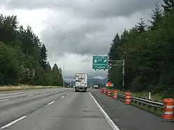 Construction on the Echo Lake Cutoff Road, along the route of the North Bend–Auburn branch of PSH 2 and the Auburn–Federal Way branch PSH 5, began in 1955. The two-lane highway would cost $9 million (equivalent to $106 million in 2024[32]) and the 32-mile-long (51 km) route was chosen to avoid Tiger Mountain and connect the city of Tacoma to Snoqualmie Pass.[33] The first section, between US 99 and Auburn, was opened on December 19, 1958.[34][35] SR 18 was designated on the corridor during the 1964 state highway renumbering and codified into state law in 1970, replacing the branches of PSH 2 and PSH 5.[2][36] The final 7 miles (11.27 km) of the Echo Lake Cutoff, from an entrance to Tiger Mountain State Forest to I-90, was officially opened on December 1, 1964.[33][37] A new interchange with I-5 in Federal Way was opened to traffic on January 31, 1967,[38] officially completing SR 18.[39]