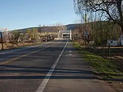 SR 225 starts at a roundabout with SR 224 just north of the Interstate 82 / U.S. Route 12 interchange in south Benton City. The highway passes over the Yakima River on the Benton City – Kiona Bridge,[2] which is listed on the Washington Heritage Register and the National Register of Historic Places.[3][4] After a brief turn to the west, the highway resumes northerly into Benton City, serving as the main street through town. The Yakima River continues to parallel the highway as it exits town, passing between a hill on the west side and the river, followed by Horn Rapids County Park on the east until the highways terminus at SR 240.[5]