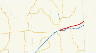 SR 290 begins as a short freeway at a directional T-interchange with Interstate 90 (I-90) east of downtown Spokane. This interchange was originally built for a planned North Spokane Corridor in the 1970s. The freeway continues north to an interchange with 2nd Avenue that only allows eastbound traffic to enter and westbound traffic to exit the freeway.[3] The highway is named Hamilton Street and travels north over Sprague Avenue, BNSF Railway tracks,[4] and the Spokane River before intersecting Trent Avenue, the former route of the roadway prior to 2005.[2] At the intersection, located near Gonzaga University, SR 290 turns east and becomes Trent Avenue before crossing the Spokane River again.[5] Trent Avenue travels northeast through an industrial district, paralleling the Spokane International branch of the Union Pacific Railroad,[4][6] through Millwood before intersecting SR 27, locally named Pines Road. The highway crosses the Spokane River a third time and enters the Trentwood neighborhood of Spokane Valley, where it intersects Sullivan Road by way of a diamond interchange.[7] From Spokane Valley, the roadway travels northeast through farmland to Newman Lake, where it crosses into Idaho and becomes Idaho State Highway 53, which continues east to Rathdrum as Trent Road.[8]