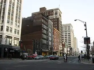 Washington Street–Monument Circle Historic District is a national historic district located at Indianapolis, Indiana, United States, covering the first two blocks of East and West Washington and Market streets, the south side of the 100 block of East Ohio Street, Monument Circle, the first block of North and South Meridian Street, the first two blocks of North Pennsylvania Street, the west side of the first two blocks of North Delaware Street, the east side of the first block of North Capitol Avenue, and the first block of North Illinois Street. In total, the district encompasses 40 contributing buildings and 2 contributing structures in the central business district of Indianapolis centered on Monument Circle. It developed between about 1852 and 1946, and includes representative examples of Italianate, Greek Revival, and Art Deco style architecture.