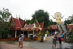 Wat Phra Yai, known in English as the Big Buddha Temple, is a Buddhist temple on Ko Phan (also spelled Koh Fan or Koh Faan), a small island offshore from the northeastern area of Ko Samui, Thailand, connected to that island by a short causeway 3 kilometres (1.9 miles) north of Samui International Airport. As its name indicates, it is home to a giant, 12-metre-high (39-foot) gold-painted Buddha statue. Since being built in 1972, it has become one of Ko Samui's main tourist attractions and a major landmark.[1]