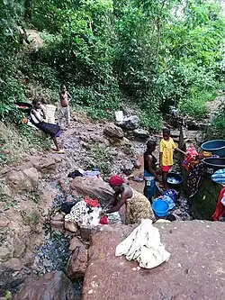 As of 2015, 67% of the total population of Nigeria had access to at least basic water supplies.[8][9] This was 82% of the urban population and 54% of the rural population. Most people in Nigeria do not have access to clean water, especially in the rural areas.[10] The global water sanitation and hygiene statistics shows that 79 per cent of Nigerians go through the challenge of water scarcity.[11] In 2015, about 60 million people lacked access to "at least basic" water. As for sanitation, only 33% of the total population had access to "at least basic" sanitation. This was 39% of the urban population and 27% of the rural population. Approximately 122 million people still lacked access to "at least basic" sanitation.[9][12]