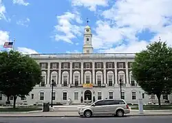 The Waterbury Municipal Center Complex, also known as the Cass Gilbert National Register District, is a group of five buildings, including City Hall, on Field and Grand streets in Waterbury, Connecticut, United States. They are large stone and brick structures, all designed by Cass Gilbert in the Georgian Revival and Second Renaissance Revival architectural styles, built during the 1910s. In 1978 they were designated as a historic district and listed on the National Register of Historic Places. They are now contributing properties to the Downtown Waterbury Historic District.