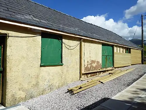 The station is closed to passengers, but the station building remains in use as an engineers' base. The original station had one platform, which was demolished after closure. During the latter part of 2016 Snowdon Mountain Railway engineers constructed two new platforms at Waterfall station, one on each side of the main running line.
