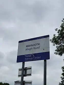 Waterways Ireland signpost alongside the Royal Canal upon entering Maynooth in County Kildare.