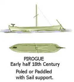 The larger pirogue is more famous on the lower Mississippi River. The earlier ones were carved from cypress and sycamore. Some of these were nearly 50 feet (15 m) long and 5 feet (1.5 m) wide. These French pirogues often had a small sail which could relieve them of their pole and paddle propulsion. As their carpenters came onto the frontier, they made them with planks and a flat bottom. Spanish vessels on the Mississippi River system's shoal waters were similar.