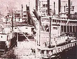 A network of local produce exchange was carried between the farmers' landings and major town markets along the rivers. For example, one pair in the 1880s, the paddle wheelers Courier and Express, carried the mail between Wheeling and Parkersburg. These two steamboats passed each other daily, boating also with local produce and passengers.[42]
