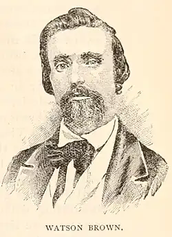 Watson Brown (October 7, 1835 – October 19, 1859) was a son of the abolitionist John Brown and his second wife Mary Day Brown, born in Franklin Mills, Ohio (today Kent, Ohio).[1] He was married to Isabell "Belle" Thompson Brown,[2] and they had a son Frederick W., who died of diphtheria at age 4, and is buried at what is now the John Brown Farm State Historic Site in North Elba, New York.