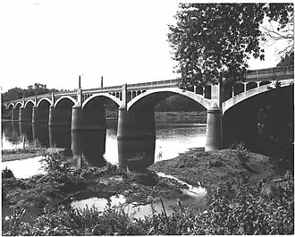 Watsontown River Bridge is a historic bridge in Watsontown, Northumberland County, Pennsylvania and White Deer Township, Union County, Pennsylvania. It was built in 1927, and consists of nine open spandrel arches with a total length of 1,080-foot-long (330 m). It is constructed of concrete and crosses the Susquehanna River.[2]
