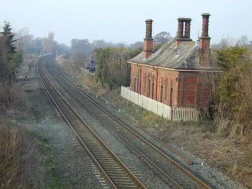 This station, which opened on the day the first station closed, had two side platforms with matching buildings and canopies. It also had goods sidings. Passengers services ceased in 1959 and the station closed completely six years later.[1]