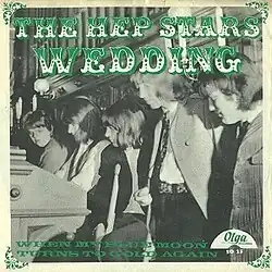 The band was initially unsure on whether they wanted to release "Wedding" as a single, similarly to the situation with "Sunny Girl".[17] Andersson would later tell this to a reporter: "It was only Svenne and I who wanted to record "Wedding", the others thought it was too complicated."[17] This was most likely due to the fact that "Wedding" further strayed the band away from their rhythm and blues and rock roots. The band eventually came to an agreement, and in May 1966, "Wedding" was issued as a single by Olga Records under the catalogue number SO 25.[27][28] The B-side was "When My Blue Moon Turns to Gold Again", a song that had previously been recorded by Elvis Presley for his eponymous album Elvis in 1956, an artist that Hedlund greatly admired and often tried to imitate.[29] This rendition of "When My Blue Moon Turns to Gold Again" feature The Jordanaires-esque backing vocals by the band, something not present on any other recordings by the group.