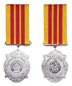The Weera Wickrama Vibhushanaya (WWV, Order of Conspicuous Gallantry) (Sinhala: වීර වික්රම විභූෂණය vīra vickrama vibhūṣaṇaya) is the third-highest military decoration awarded by the Military of Sri Lanka for: