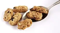 Weetabix is a breakfast cereal produced by Weetabix Limited in the United Kingdom. It comes in the form of palm-sized (approx. 9.5 cm × 5.0 cm or 4" × 2") wheat biscuits. Variants include organic and Weetabix Crispy Minis (bite-sized) versions.[1][2] The UK cereal is manufactured in Burton Latimer, Northamptonshire, and exported to over 80 countries.[3] Weetabix for Canada and the United States is manufactured in Cobourg, Ontario, in both organic and conventional versions.