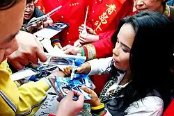 In 2007, she was appointed Ambassador for the Chinese Football Association,[59][60] and her single Go, Girl Go! was appointed the official theme song of the 2007 FIFA Women's World Cup.[61] FC Barcelona players Carles Puyol, Lionel Messi, Deco and others joined Wei in the Go, Girl Go! music video as a salute to women's football players.[11][61][62][63]