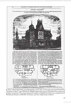 Hobbs' Architecture - Design LXXXVII - Suburban Mansion engraving, ca. 1876. Weigley Mansion (Heidelberg Hall) was the only structure ever built using this design.