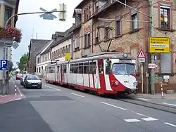 The Weinheim–Heidelberg railway is a metre-gauge railway between Weinheim and Heidelberg in the German state of Baden-Württemberg. It was built by the former Oberrheinischen Eisenbahn-Gesellschaft AG (Upper Rhine Railway Company, OEG), later MVV OEG AG and is now operated by MVV Verkehr GmbH (infrastructure owner) and RNV (operations manager and train operator) according to Eisenbahn-Bau- und Betriebsordnung für Schmalspurbahnen (narrow-gauge railway regulations; ESBO). A short dual gauge section between Heidelberg and Schriesheim was formerly operated to carry standard gauge freight. It is operated as a branch line using electronic direct traffic control.