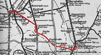 | Weinheim–Worms railway | ||||||||||||||||||||||||||||||||||||||||||||||||||||||||||||||||||||||||||||||||||||||||||||||||||||||||||||||||||||||||||||||||||||||||||||||||||||||||||||||||||||||||||||||||||||||||||||||||||||||||||||||||||||||||||||||||||||||||||||||||||||||||||||||||||||||||||||||