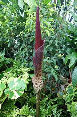 An unusual plant in the garden is the voodoo lily, Amorphophallus konjac, which only flowers once every few years and smells like rotting meat. Plants such as this attract a lot of public interest.[52]