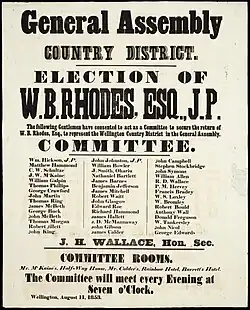 - ^ "COUNTRY DISTRICTS ELECTION". The Wellington Independent. Vol. X, no. 1310. 4 August 1858. p. 3. Retrieved 17 December 2016.