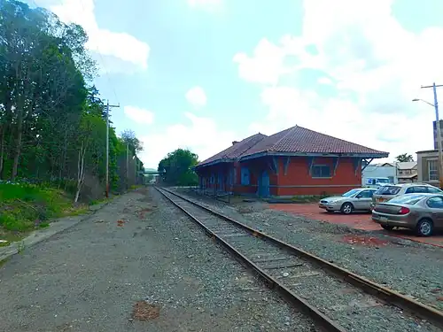 Wellsville Erie Depot is a historic train station located at Wellsville in Allegany County, New York. It was constructed in 1911, for the Erie Railroad. It is a one-story, 132-foot (40 m) by 33-foot (10 m) structure displaying elements of the Queen Anne and Romanesque Revival styles popular in the late 19th and early 20th century. It is located across the street from the Wellsville Post Office.[5]