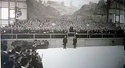 Weißheimer knew of Wagner's financial problems. Die Meistersingers was not finished on schedule and Schott held back the payments. Wagner's admirers denied him further assistance. To relieve Wagner's financial difficulties Weißheimer organized a concert at the Leipzig Gewandhaus on 1 November 1862.[3] Despite the personal involvement of Wagner, von Bülow and other renowned artists and organizations with works by Wagner, Liszt and Weißheimer,[4] the attendance at the concert was so low that not enough revenue was collected to cover the costs.[5][n 3] This concert was the first time that Wagner had been allowed to perform in Germany after his exile.