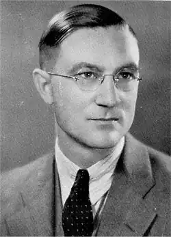 Wendell Dunn was the son of Moncena and Lois Woodward Dunn. Moncena Dunn (1867–1944) was a farmer, optometrist, and inventor of the patented Dunn Ballot (fraud-proof coupon ballot).[2][3] After a boyhood on a prairie homestead near Summit, South Dakota, Wendell Dunn earned an A.B. in transportation from the University of Wisconsin in 1916. He helped pay his way through college playing professional baseball as a second baseman in the Three-I League and as a cornetist and violinist in musical ensembles. He began his career in education after serving in the Army in World War I, during which time he attended officers candidate school. His first school post was as a high school science teacher in Pierre, South Dakota, from 1918 to 1919. During that time he supplemented his income by ghostwriting speeches for state legislators, sometimes penning remarks on both sides of a debate question. Dunn then served as superintendent of the Blunt, South Dakota, school district for four years before beginning a seven-year tenure as principal of the Aberdeen, South Dakota Senior High School. From 1924 to 1930 he was a professor of economics and American history at the Black Hills Teachers College in Spearfish, South Dakota. In 1927 he earned his M.A. in education from the University of Wisconsin. He moved to Baltimore in 1931. He had studied during summer 1921 at the Johns Hopkins University.[4]