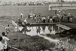 The equestrian community was initially shocked and amused when Canada entered three 20-year-olds, including two women, into the Three-Day Event, competing mainly against male cavalry officers and disbelieving South Americans. However, the skeptics were silenced when Wendy Irving from Hull, Quebec, secured a gold medal for the team with a flawless ride on High Wind.[5]