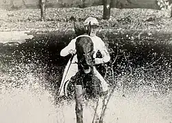 Among the male dominated 73 competitors, Dell, 20 at the time, was the youngest of the only three women to compete among the 19 countries entered. She was one of the only 48 riders to complete the competition (as were the other two women). Nearly a third of the competitors were unable to finish what was known as one of the most difficult cross-country courses in Olympic history - with four fences alone producing 38 refusals, 18 falls and 7 eliminations. The cross-country phase also included the old eventing format with steeplechase and two roads and tracks components – which was over thirty miles long.[6][2]