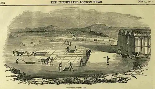 The Wenham Lake Ice Company, operating out of Wenham Lake in Wenham, Massachusetts, United States, harvested ice and exported it all around the world before the advent of factory-made ice. Wenham-lake ice was awarded a royal warrant from Queen Victoria.