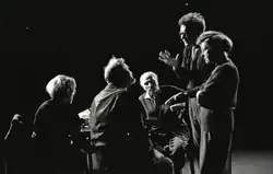 ![]() Werner Düggelin (second from right) 1964 at a rehearsal of "Das Leben des Horace A. W. Tabor" by Carl Zuckmayer (Zuckmayer in the middle) | |