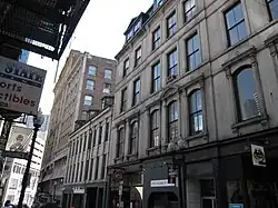 The Wesleyan Building (est.1870) of Boston, Massachusetts, is located on Bromfield Street in the vicinity of Downtown Crossing. Architects Joseph Billings and Hammatt Billings designed it as the headquarters of the Methodist Boston Wesleyan Association.[1][2] Tenants have included the New-England Methodist Historical Society; Zion's Herald; Woman's Foreign Missionary Society of the Methodist Episcopal Church;[3][4] Boston Lyceum Bureau; Boston Theological Seminary;[5] Boston University School of Law;[6] Emerson College of Oratory;[7] and Hudl.[8] By 1912 the Methodists had moved to a new building on Copley Square.[1]
