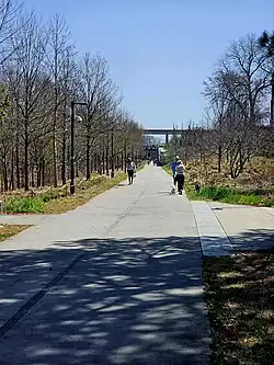 West End is also a pioneer neighborhood for the BeltLine project in Atlanta. The first model mile was completed in the spring of 2008. The model mile consists of the biking and walking path, improvement of Gordon-White Park, and one new park behind Brown Middle School. In addition Trees Atlanta planted 200 trees native to West End which will be part of a 22-mile (35 km) linear arboretum that will follow the BeltLine corridor. Livable Center Initiative (LCI)[8] granted funds for West End to renovate and improve its streetscape to make it a more walkable community. West End is included in the Peachtree Corridor plan.[9] With the Peachtree Corridor, the BeltLine, and MARTA, West End is one of the most transit-oriented neighborhoods in Atlanta. Along the BeltLine in West End is the Lee + White which is a large mixed-use development that has 23 acres of businesses, eateries, and a greenspace.[10]