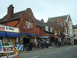 The lane takes its name from the Medieval West End hamlet, built on land belonging to Kilburn Priory, denoting the western extent of Hampstead.[2][3] In the 19th century, the once rural area was gradually merged into the expanding London suburbs. The first station at West Hampstead was opened in 1871, with two other railway lines adding stations nearby before the end of the century as it become a popular location for commuters. Most of the buildings date from the late 19th century onwards, with a number of Edwardian redbrick mansion blocks and interwar art deco apartment buildings. West End Green is located near the northern end of the street, north of West Hampstead, just as it turns towards Frognal.