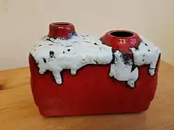In 2006 Graham Cooley organised the exhibition "Fat Lava: West German Ceramics of the 60s & 70s" at the King’s Lynn Arts Centre[1] from his vast collection. This exhibition popularized the phrase "fat lava" but was not the origin as some believe. The term was in use by eBay sellers years before and may have originated as a mistranslation by computer programs. Mark Hill published "Fat Lava", which is an expanded catalog for Graham Cooley's exhibition and collection. The book has since been revised multiple times. In 2021, a Japanese edition of Fat Lava was also published, further expanding the reach and appreciation of West German art pottery.