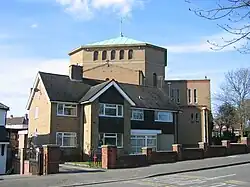 - St John Fisher Catholic Church – The large influx of Irish people in the 1950s led to the establishment of the Catholic parish of St. John Fisher on 30 September 1956 with first masses being held by Father Philip Smith at Turves Green Girls School and afterwards at Archbishop Masterson Girls' School. Father Philip Smith cut the first turf on the land for a new church on 5 March 1962 and Archbishop Grimshaw laid the foundation stone on 25 June 1962 with the church being opened on 31 March 1964 and consecrated on 22 June 1972, the feast of St. John Fisher. The building was designed by the architect E. Bower Norris. Until it sustained damage and was removed in 2008 there was a large wooden sculpture of St. John Fisher dressed as Bishop of Rochester, sculpted by Jonah Jones (1919–2004), attached to the front of the church but it has now been replaced by the pattern of a cross in brick. The large Catholic population in West Heath amounts to about 900 families living in the area in 2010.[32]