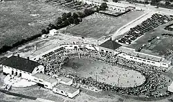 Another notable building of the area was The Bath Tub open air lido (now demolished), opened on 1 July 1937 in Alvechurch Road, where 20,000 people had gathered to watch the opening ceremony by Gracie Fields with Mantovani and his orchestra and the M.P. for Northfield and Kings Norton, Ronald Cartland, the brother of Dame Barbara Cartland, the novelist. The lido which had been built by Percy Hollier who intended it to be "Birmingham's brightest entertainment spot" and which included a 180 feet by 90 feet sized swimming pool as well as a putting green, lawn for archery and a children's playground, only operated for 3 years and was closed due to commercial failure.[17][18] Laughtons took over the site with Eddystone Radio during the war when its rural location helped it to avoid attack by German air raids. The lido site is now covered by a housing estate. There is also the art deco Man On The Moon pub on Redditch Road, which was built in 1937 (originally as The Man In The Moon but the name was changed in 1969 to commemorate the first Moon landing).[19]