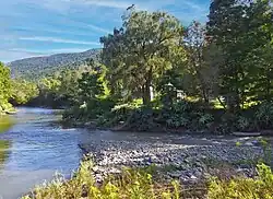 The West Kill, an 11-mile-long (18 km)[2] tributary of Schoharie Creek, flows through the town of Lexington, New York, United States, from its source on Hunter Mountain, the second-highest peak of the Catskill Mountains.[3] Ultimately its waters reach the Hudson River via the Mohawk. Since it drains into the Schoharie upstream of Schoharie Reservoir, it is part of the New York City water supply system. It lends its name to both a mountain to its south and a small town midway along its length.