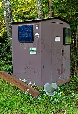 The United States Geological Survey (USGS) maintains two stream gauges along the West Kill. One, in operation since the 1950s but not reporting continuous data until 1997,[4] is located on the lower stream, roughly 1.4 miles (2.3 km) north of the hamlet of West Kill, just downstream from the Beech Ridge Brook confluence.[32] The other, established in 1997 and reporting continuously since then, is located near the kill's headwaters, at the last crossing of Spruceton Road, just below the Hunter Brook confluence.[33]