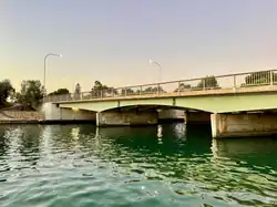 Delfin Island is linked to the mainland by a singular road — West Lakes Boulevard – in addition to two pedestrian bridges. One on the west of the island links Bartley Terrace with Keppel Grove, and one on the east links Lochside Drive to Kerr Grove and Corcoran Drive.