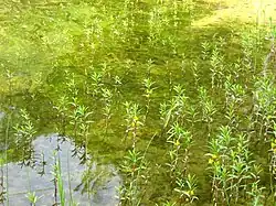 Central European vascular plants dominate, including forest-forming trees like European hornbeam, pedunculate oak, sessile oak, Norway maple, ash, and European beech, and groundcover plants like wood anemone and dog's mercury. Outside forests, cowslip grows on dry, sandy soils, marsh pennywort on meadows, and white waterlily in waters. The Myślibórz Lake Land has calcium-loving flora on lake chalk deposits,[38] with chalk peatlands among Poland's main northwestern sites.[39] Arctic-alpine and boreal elements, like white adder's mouth, common butterwort, great horsetail, Valeriana sambucifolia, and wild garlic, are common in the Bytów and Drawsko lake lands. Oceanic species include cross-leaved heath, swamp sawgrass, brown beaksedge, blunt-flowered rush, and Groenlandia densa.[40]