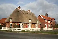 The Post Office is a Grade II listed former cottage, now shop and house, dating from the late 17th century with 20th-century alterations and additions. It is likely to have been mud and stud originally, but is now underbuilt in red brick with a thatched roof.[7]