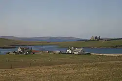 ![]() West Sandwick, Yell, with North Mainland in the background | |