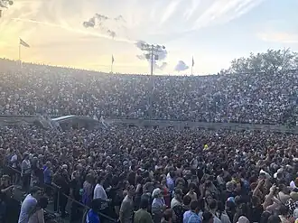 However, in mid-2013, the stadium re-opened as an outdoor concert venue with Mumford & Sons performing the inaugural concert on August 28.[13] Since then the Forest Hills Stadium has held a regular summer concert series featuring Santana, Zac Brown Band, D'Angelo, Van Morrison, Arctic Monkeys, and others.[1] It is also the summer home of The New York Pops.[14]