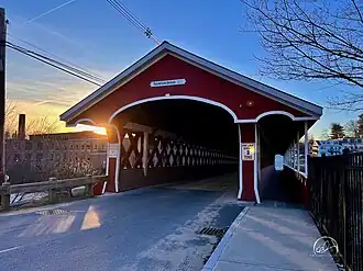 The West Swanzey Covered Bridge (also known as the Thompson Bridge) is a historic wooden covered bridge carrying Main Street over the Ashuelot River in West Swanzey, New Hampshire. Built in 1832, it is one of New Hampshire's few surviving 19th-century covered bridges. Unlike most of those, it is prominently located in the village, providing access from the village center to New Hampshire Route 10. The bridge was listed on the National Register of Historic Places in 1980.[1]