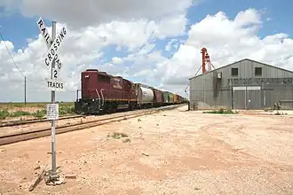 The West Texas & Lubbock Railway (reporting mark WTLC) is a shortline railroad in Texas, owned by Watco. It connects the BNSF in Lubbock with agricultural and oil-producing areas to the west and southwest. The company operates 107 miles of two ex-Atchison, Topeka & Santa Fe Railway lines, extending to Whiteface and Seagraves parallel to State Highway 114 and U.S. Highway 62. The primary commodities hauled are fertilizer, construction aggregates, grain, cotton, chemicals, peanuts and plastics.