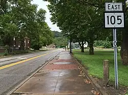 West Virginia Route 105 (abbreviated WV Route 105 or WV 105) is an east–west state highway located within Weirton, West Virginia, United States. The western terminus of the route is at West Virginia Route 2 north of downtown Weirton. The eastern terminus is at U.S. Route 22 (exit 5) in Weirton Heights, just 1/2 mile west of the Pennsylvania state line.