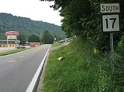 West Virginia Route 17 is a north-south state highway located in the southern portion of the U.S. state of West Virginia. The southern terminus of the route is at West Virginia Route 10 in Stollings a short distance east of Logan. The northern terminus is at West Virginia Route 85 in Madison.